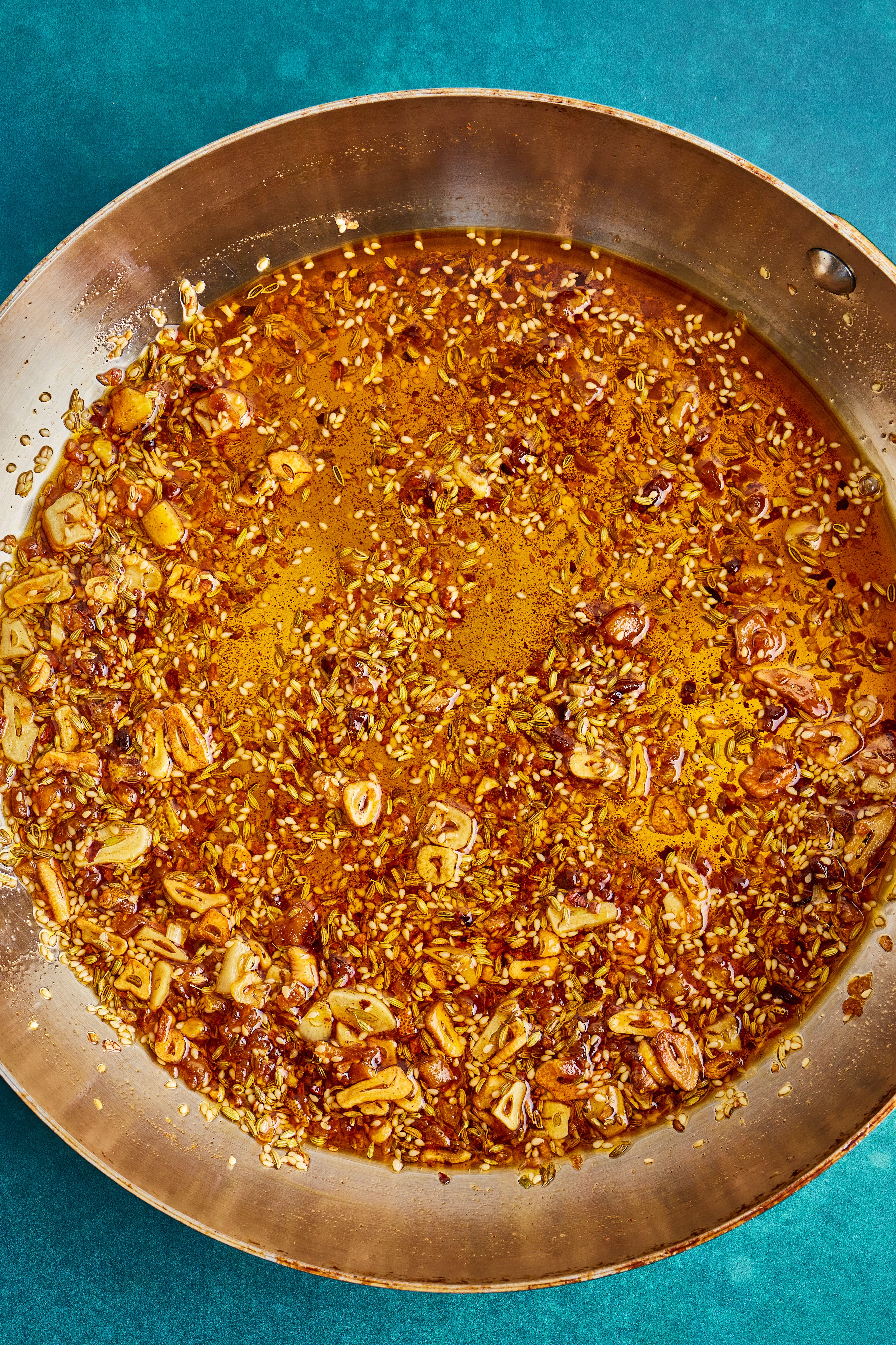 This is a two-part recipe (gasp!). The first, my take on the ubiquitous chili crisp oil, is completely and totally optional. To be honest with you, the peeling of the shallots is such a pain in the eyeballs that these days, I’d rather pop open a jar that I bought at the store. Everyone saw my plug for the mouth-watering Nam Prik Pao by Pink Salt, right? That would be perfect here.